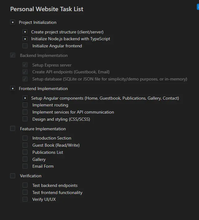 为了测试,我给 Antigravity 布置了一个任务:创建一个个人主页。